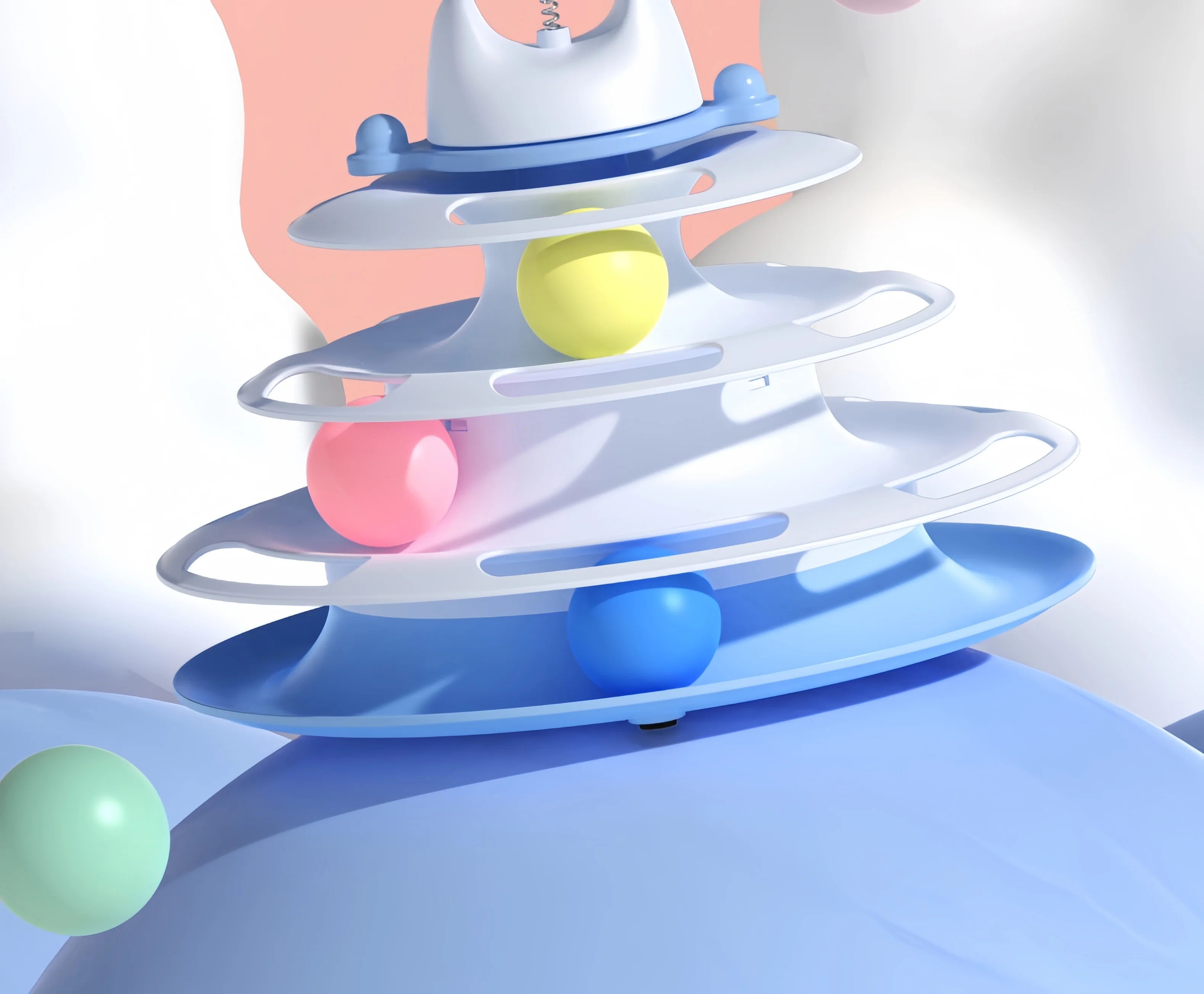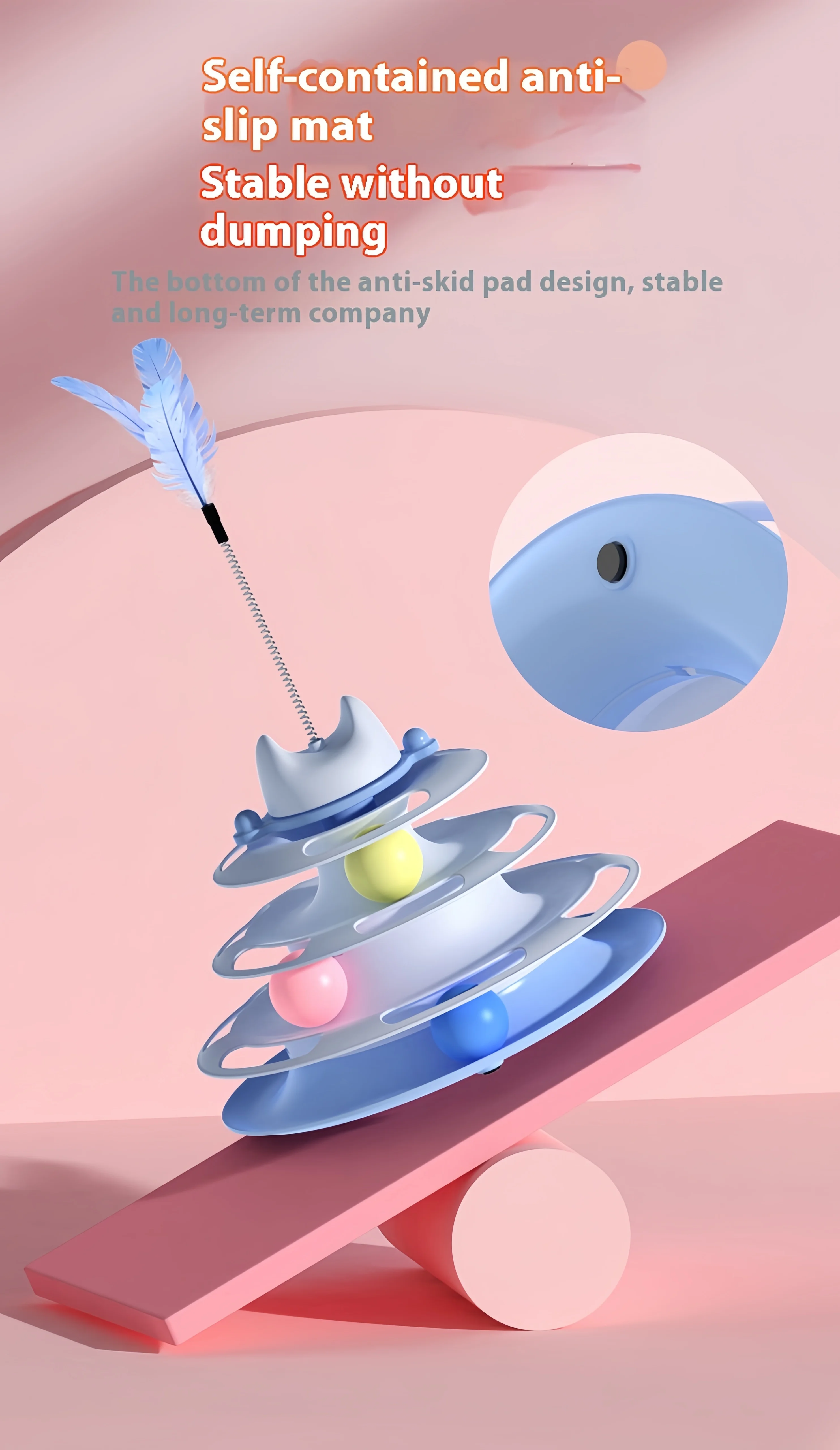 - Quatro camadas de pura alegria: bolinhas coloridas, penas giratórias e uma pista oca que desafia a curiosidade do seu gato. 🌈